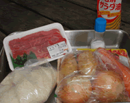内容:カレールー・野菜・肉・お米・調味料・皿・スプーン